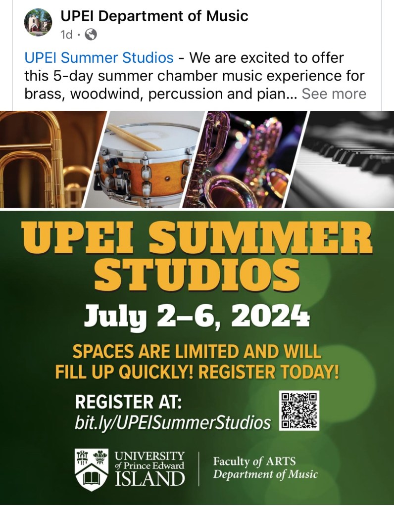 UPEI SUMMER STUDIOS Posted on 4 May 2024 by EastWiltshireBand Share this: Click to share on X (Opens in new window) X Click to share on Facebook (Opens in new window) Facebook Like Loading...