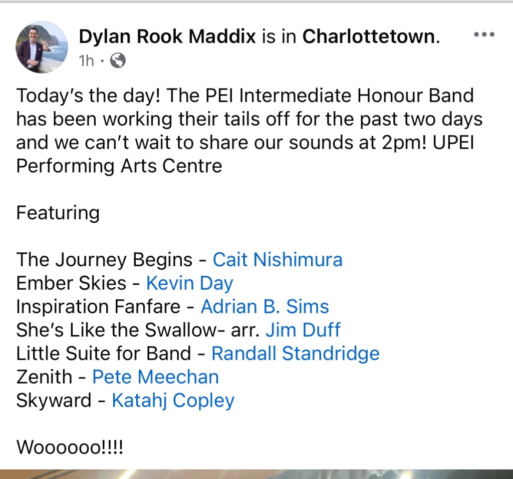 The concert is at 2:00 pm today at the UPEI Performing Arts Centre!